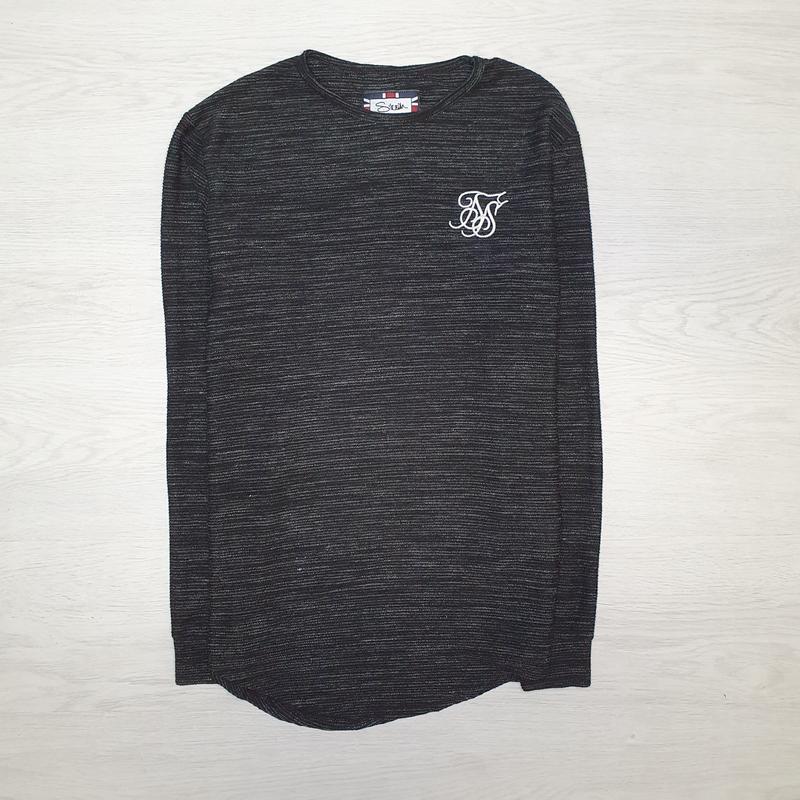 Отличный лонгслив от молодежного бренда SikSilk сероко цвета с логотипом на груди