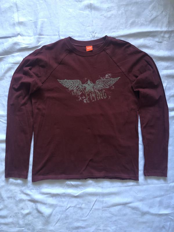 Лонгслив Boss Hugo Boss L (заміри: без лінії плеча, ПОГ 56, низ 54, рукав від горловини 83, довжина по спині 65), виконаний з 100% бавовни. Родзинка моделі: плечовий шов назовні; заклепки на плечах.