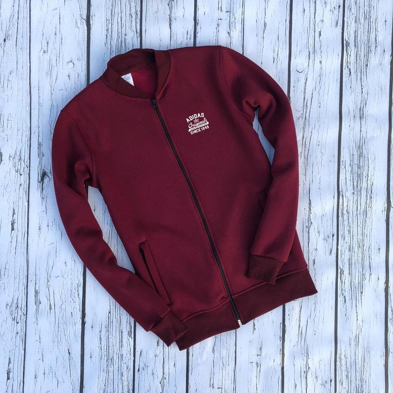 Бомбер мужской Adidas теплый бордовая кофта на молнии в стиле адидас - сезон: весна/осень - размеры: L, XL - материал: трикотаж - значок: принт - состав: 85% хлопок, 15% полиэстер Подробнее: *****************************************************************