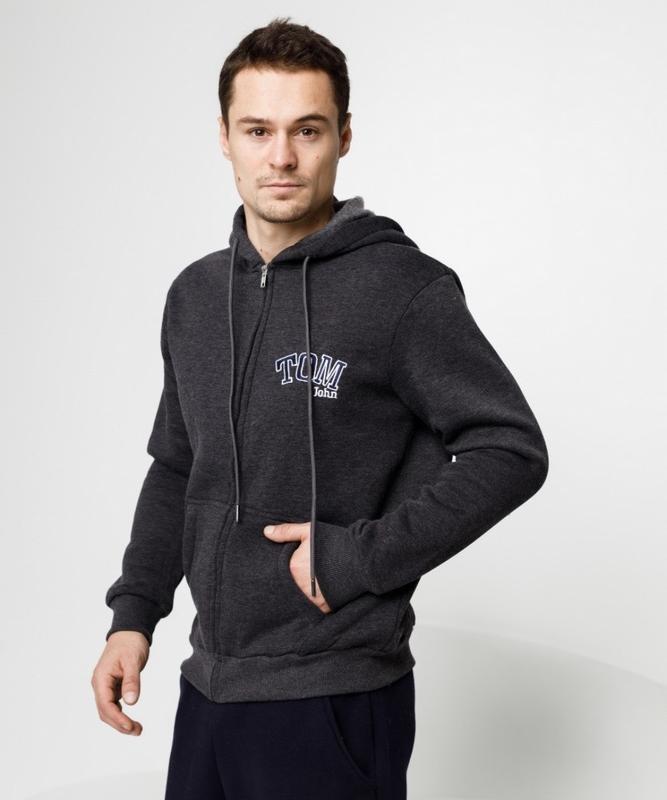 Чоловіча спортивна кофта на флісі Розмір L ПОГ — 60 см. Довжина — 70 см. Довжина від паху — 44 см. Рукав від шиї — 76 см. Ширина плечей — 48 см.
