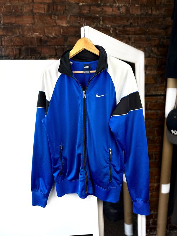 Vintage Nike Track Jacket Full Zip YKK Blue Size: M ◾️Стан: 5/5 ◾️Розмір: M Заміри: •Довжина від коміра - 59 см •Довжина по замку - 66 см •Довжина по спині - 67 cм •Довжина рукава від шиї - 83 см •Підмишки - 56 см •Вихід - 46 см