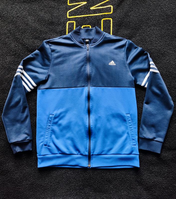 Продається олімпійка Adidas DAYREADY TRACKTOP. Гарний стан. Розмір вказаний дитячий XL 176 Всі розміри на фото. Дизайн із трьома смужками на рукавах, стоячим коміром і повним замком-блискавкою. Вона виготовлена з переробленого поліестеру та має бічні кишені.