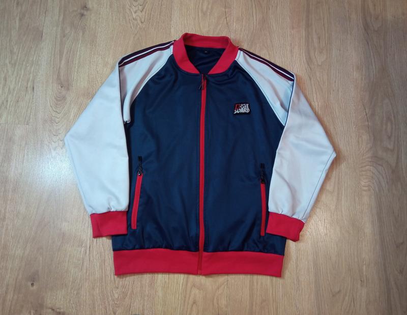 Кофта мужская зепка олимпийка бомбер. Размер M, ширина: 54 см, длина: 70,5 см. Цвет синий с белым и красным. Стан хороший.