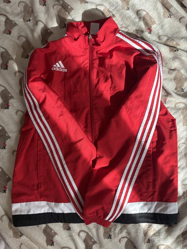 Олімпійка adidas, розмір L, підійде як на жінку так і на чоловіка, АЛЕ 😭 є дуже маленька чорна потертість ( на 7 фото)