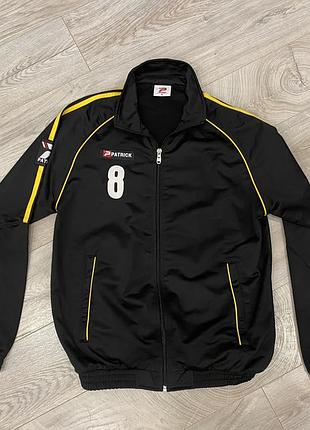 спортивная олимпийка куртка Patrick (le paradis rue des coteaux) Patrick (Патрик) — спортивная экипировка из Бельгии. Состояние идеальное. Состав: polyester 100% Размер М Замеры: - плечи - 45см (без четких границ) - грудь (полуобхват, между подмышками) - 55см - длина по спине без учета воротника - 66 см - длина рукава от плеча - 61см