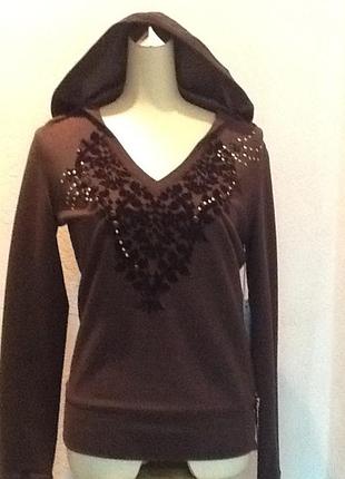 Кофта , толстовка женская с капюшоном Fracamina . Подробнее на сайте Молодежное полу спортивное направление . Рукав длинный . На груди рисунок , украшен камушками . Современный оригинальный дизайн , идеальное брендовое исполнение . Необходимая деталь гардероба для любой леди . Цвет : коричневый шоколадный . Размер : стандарт .