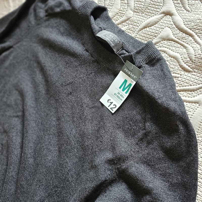 Приятный на ощупь новый мужской свитер Primark. Размер М. Цвет темно-серый Состав: 100% котон Замеры: Ширина 55 см Длина от плеча 70 см