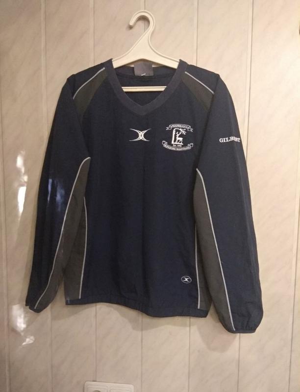 Качественная вещь от Gilbert created to perform клубной команды Reading RFC - редингского регби-клуба Британия Верх водостойкий, подкладка перфорированная, дышащая. Эластичные манжеты, низ на резинке и удобный эластичный воротник позволяют легко надеть и снять. Вышитые логотипы. На этикетке размер указан S, но по факту больше. Ориентируйтесь по замерам! Ширина под мшками-120 Рукав "реглан" от шеи -79 длина по спине-67 Без дефектов.