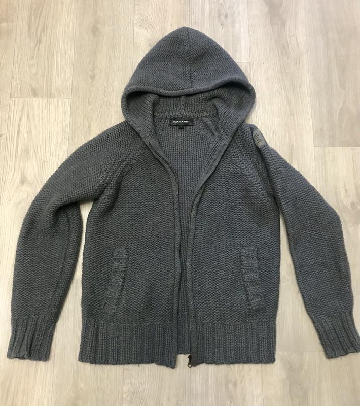 Кофта худі куртка сіра zip зіпка капюшон 100% вовна груба в’язка