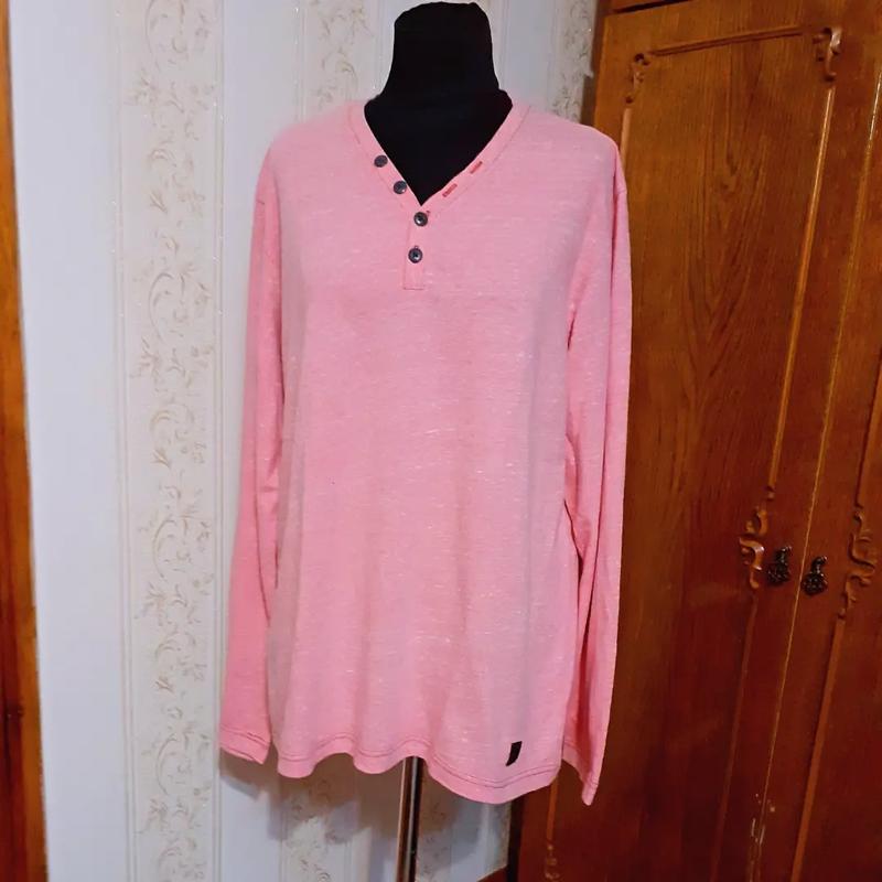Брендовый в оригинале реглан в составе хлопок полиэстер вискоза с вивидной горловиной на пуговицах розовый меланж приятный к телу!Дл.72 Пл.49 Р 64 Ог-Об 120-130 Б по 22+