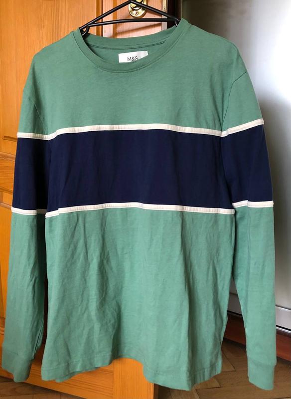 реглан свитер Marks & Spencer зеленый с синей полоской размер L стан хороший