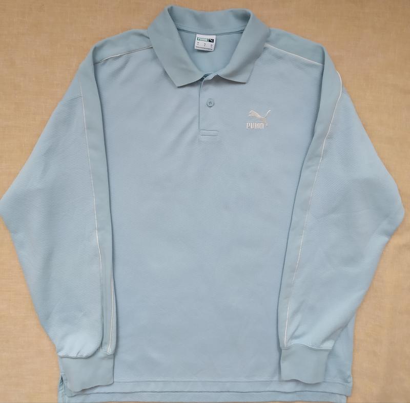 Прямо из архива PUMA 70-х, модель T7 была в дальнейшем обновлена, и в этот раз мы переработали ее на свитшот-поло в стиле регби. Он имеет свободный крой, плоский трикотажный воротник и длинные рукава. Конечно же фирменные полосы по бокам не изменились. Характеристики: Состав:70% переработанный полиэстер, 30% хлопок Изготовлено как минимум на 50% из переработанных материалов Свободный крой Двусторонний жаккардовый материал 325 г/м2 Воротник с застежкой на пуговицах Длинный рукав Панельные вставки Т7 Спинка длиннее передней частиЩельной ткани, не тонкий, не тянется. Оригинальный. Длина 67/70, рукав от ворота 76 с манжетом, ПОГ 59, голубый цвет, нежный, лимитированный