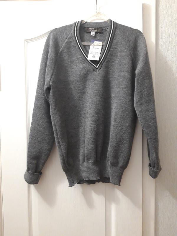 Новый джемпер Улимарк, состав 80% шерсть+20% нейлон, приятного серого цвета, унисекс. Идеально подойдет в качестве теплого дополнения школьной формы.для подростков 14-15 лет. Подойдет и на взрослых (размер S-M), замеры-на фото. Рукав (манжет) закатывается (см. фото). Немного "колящий",mon, что после стирки эта "колшачество" исчезнет. Описание изделия- л. перевод этикеткм.