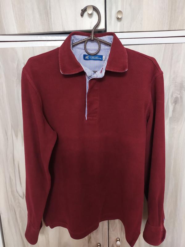 Мужской батник, на планочке, имитирующая рубашку, очень плотный, 100% хлопок, сочного вишнёвого цвета, фирма William Италия, состояние очень хорошее, замеры : от одного плечевого шва плечевого шва до второго 44 см ПОГ 51 см, длина рукава 56 см, воротник 40 см длинна 61 см