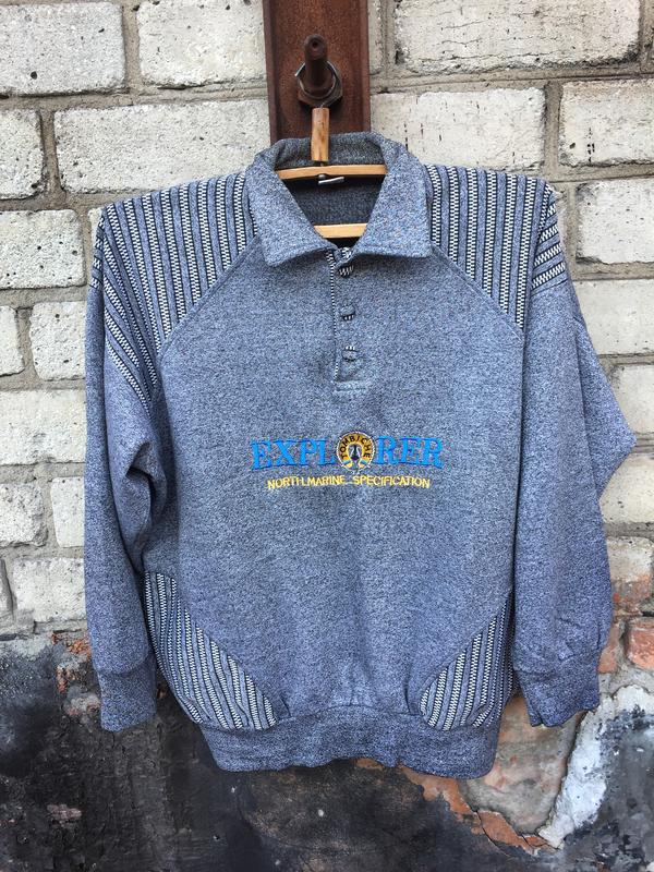 Вінтажний батник чоловічий Explorer з легким начосом, рукавом реглан, стильною вишивкою і легким нальотом лихих 90-х. Будь самим модним у дворі