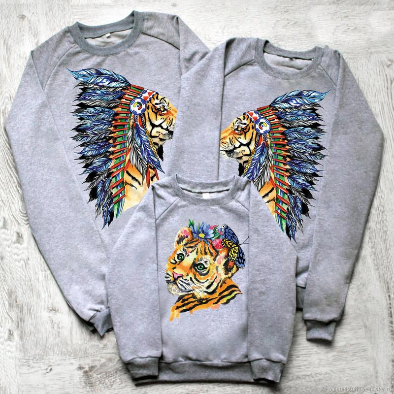 Свитшоты Family Look с принтом "Тигры - вожди" Push IT Стильные брендовые свитшоты с крутым принтом. Свитшоты из хлопка для приятной повседневной носки. Печать наносится цифровым способом, поэтому принт выдержит большое количество стирок и хорошо пропускает воздух к телу. Хлопковые свитшоты с принтами удобно носить как летом так и зимой.