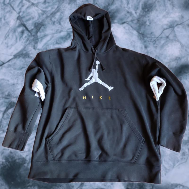 Черно-белое худи jordan & nike jumpman Состояние хорошее, оригинал! Нюансы на последних 3 фото, капюшон потерял цвет, и незначительные потёртости ткани возле кармана и на рукаве. Размер довольно большой, замеры в лс. Смотрите другие мои объявления! 🇺🇦