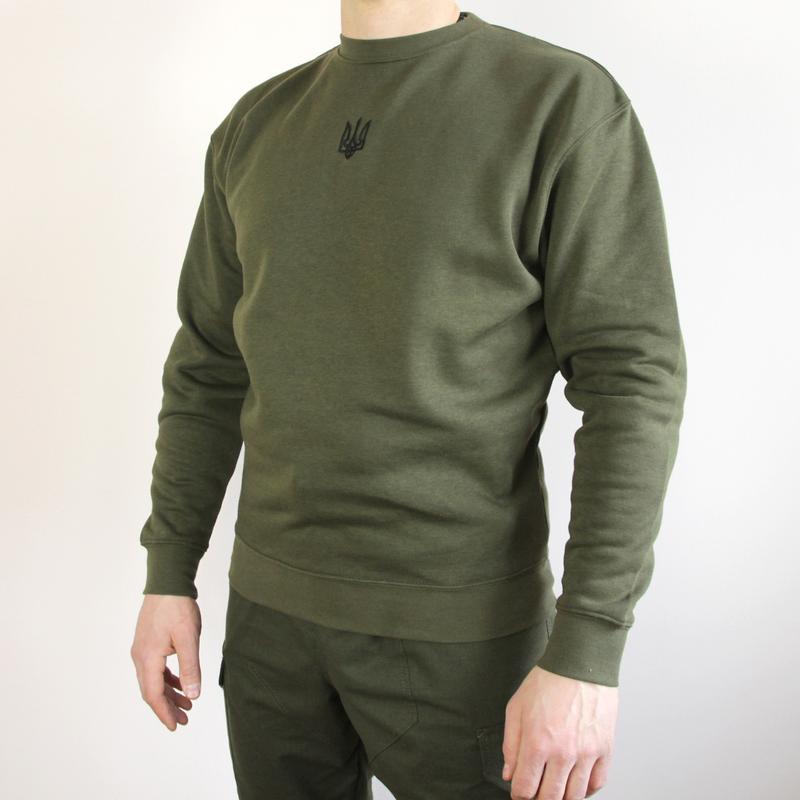Стильный свитшот с вышивкой тризуб (ххl), мужская толстовка герб украины олива, патриотиче...