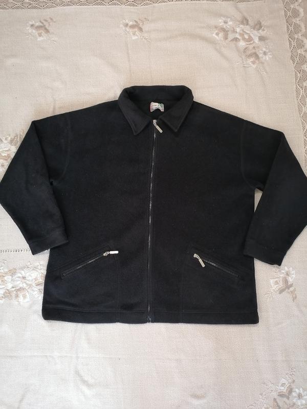 Стильная брендовая флиска, р L-XL, черного цвета, практически состояние идеальный, полуобхват груди 65 см, длина рукава от плеча 56 см, длина флиски 71 см.