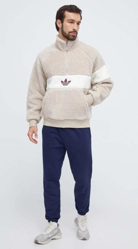 Кофта из коллекции adidas Originals Размер L Модель с мягкой подкладкой по центру обеспечивает мягкость и повышает комфорт. - Этот продукт происходит из линейки продуктов Adidas End Plastic Waste, которые изготавливаются из переработанных материалов. - Крой oversize. - Короткая застежка на молнии. - Практичный накладной карман-кенгуру спереди. - Толстый, не эластичный трикотаж. - Рукава и нижний край обработаны удобной эластичной резинкой. - Регланный рукав, благодаря своему дизайну, обеспечивает большую скорость движения. - Завышенный воротник. - Длина рукава (от горловины): 85 - Длина: 72 - Ширина под подмышками: 65 Состав: Основной материал: 100% Переработанный полиэстер Резинка: 95% Бавовна, 5% Еластан Артикул бренду: HZ0719