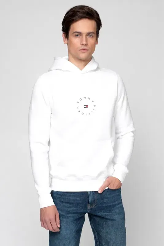 Информация о товаре Цвет: белый Декор: вышитый логотип Длина рукава: длинный, 71 см Вшитый капюшон Карманы: один карман Обхват груди: 106 см Обхват талии: 102 см Длина изделия по среднему шву спинки от горловины: 68 см