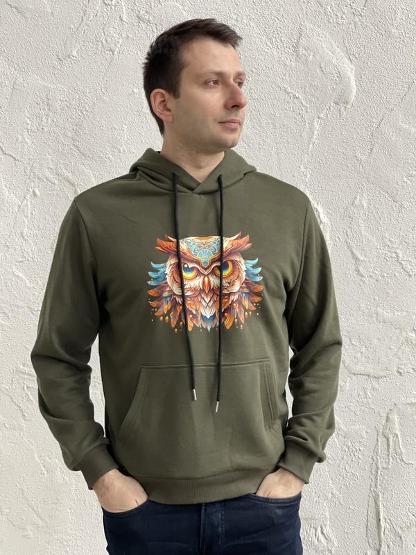 Худі чоловіче демісезон хакі/зелене з принтом (сова) (1.01.25)