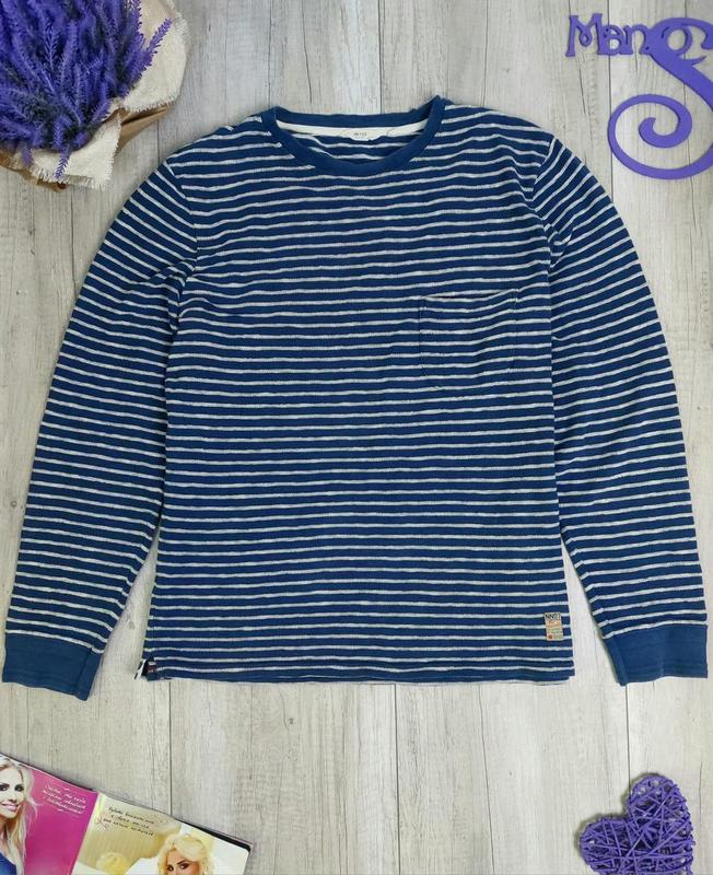 Мужской лонгслив nn07 в полоску синюю и белую размер xl (50)