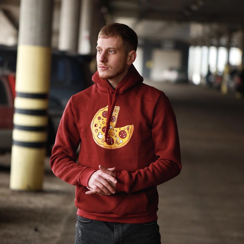Худи пицца зима бордовый s