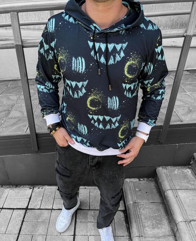 Чоловічий худі з принтом - це модний та стильний верхній одяг, який поєднує комфорт спортивного стилю з індивідуальним виразом завдяки виразному дизайну на передній частині. Чоловічі худі з принтом підходять для повсякденного носіння, вільного часу, активних вихідних, походів на природу або просто для створення незвичайного образу. Ви можете поєднувати худі з принтом з джинсами, спортивними штанами або іншими варіантами низу, а також доповнювати стиль аксесуарами, такими як кепка, окуляри або шапка. Цей одяг - це не лише зручний варіант для вільного часу, але і спосіб виразити свій стиль та особистість завдяки вибору унікального принту. Таблиця замірів: РозмірГрудиРукавДовжина кофти S51 см.73 см.62 см. M56 см.76 см.63 см. L59 см.81 см.66 см. XL62 см.83 см.68 см.