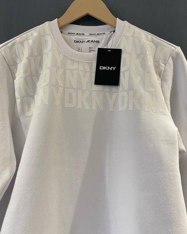 Очень классный брендовый свитшот от популярного американского бренда DKNY. Мужская модель. Может быть как унисекс но на высокую девочку с размером М. Утепленный. Новый с биркой Размер S Цвет - белый