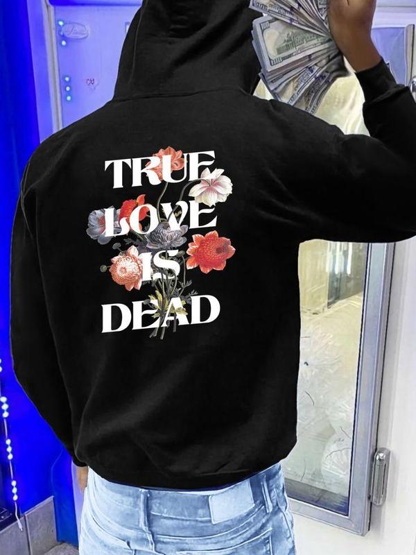 Чоловіче чорне стильне оверсайз худі з трендовим принтом