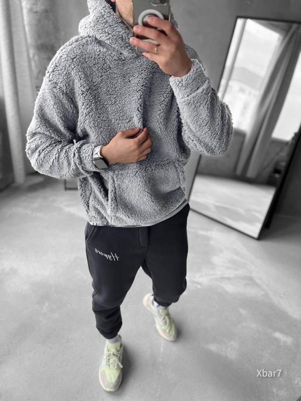 Чоловічі худі сірого кольору з капюшоном оверсайз модна толстовка для хлопця відмінної яко...