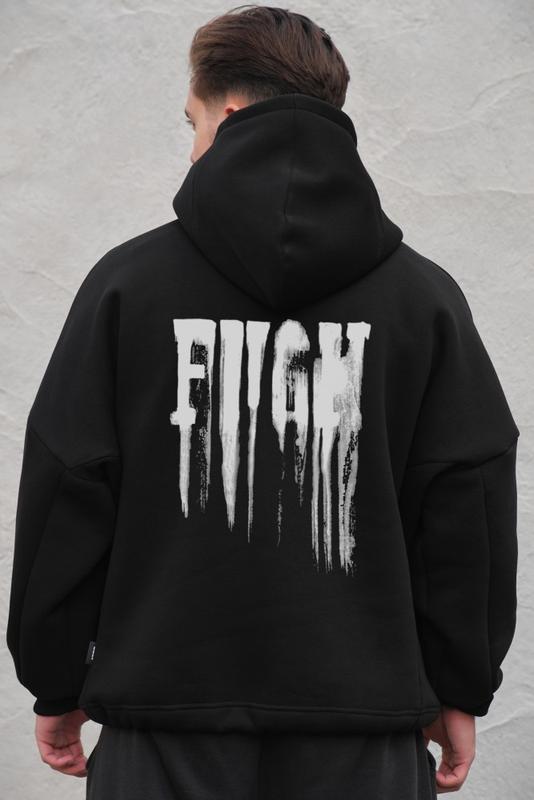 Оверсай худі толстовка на флісі з капюшоном та принтом without fight black
