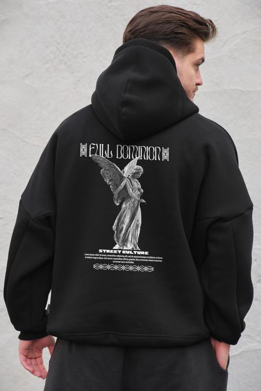 Оверсай худі толстовка на флісі з капюшоном та принтом without dominion black