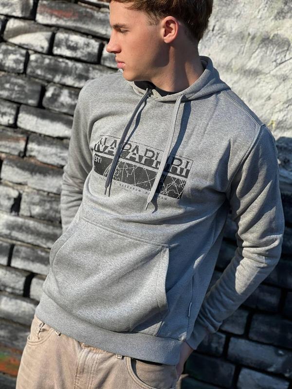 Кофта napapijri оригінал худі сіре толстовка світшот бренд утеплений новий фліс з капюшоно...