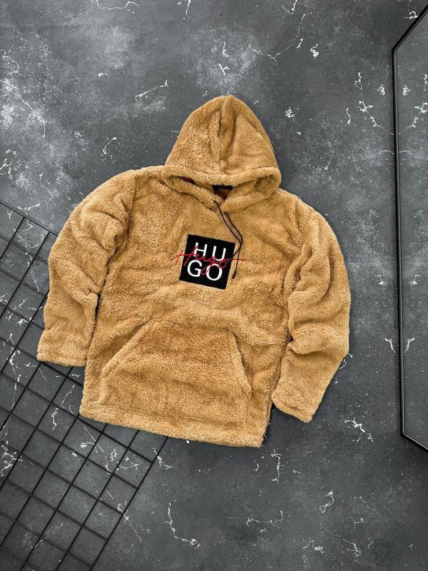 Чоловічий плюшевий бежевий худі hugo модна оверсайз толстовка хуго босс для хлопця