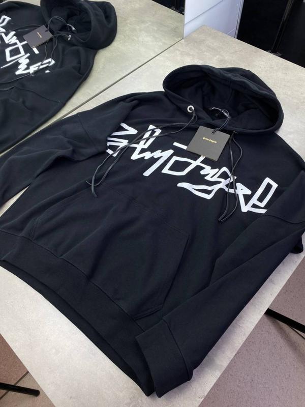 Черный худи Palm Angels с белым принтом Производитель : Турция . Материал : Хлопок . Цвет : Черный Размеры : S (Высота 70; Грудь 80 ; Рукав 64)