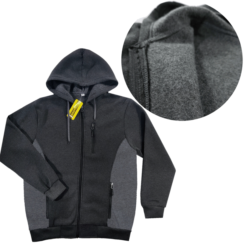 Толстовка утеплена на флісі для чоловіків. Тепла зимова модель. Оригінальний модний фасон. Гарна якість трикотажу. Куртка на блискавці з капюшоном. Кишені на блискавках. Знизу гумка манжет. Такий фасон толстовок незмінно популярний у чоловіків. Добре виглядатиме з джинсами та спортивними штанами, які можна вибрати в нашому магазині Чудова толстовка за чудовою ціною. Виробник: Китай Склад : 65% cotton, 35% polyester ПІДБЕРЕМО ДО НЕЇ ШТАНИ СПОРТИВНІ ПРЯМІ ЧИ ПІД МАНЖЕТ, БУДЕ ІДЕАЛЬНИЙ КОСТЮМ Розмір L (48) Довжина виробу 69 см. Ширина виробу 59 см. Довжина рукава від плеча 63 см. (з манжетам). Довжина рукава від капюшона 77 см. Плечі 50 см.