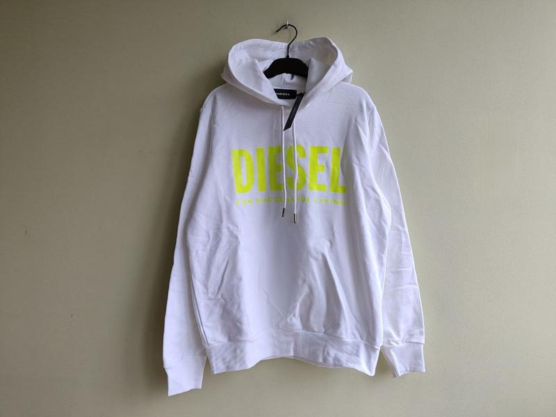 Плотная мужская толстовка худи унисекс с капюшоном S-GIR-HOOD-Division Diesel Италия Оригинал Толстовка с капюшоном из хлопка с зашморгом свободного силуэта, классическими эластичными манжетами в рубчик и металлическими шнурками. Грудь украшена логотипом Diesel. Модель: S-GIR-HOOD-Division-Logo Sweat-shirt Цвет- белый ( может немного отличаться от фото) Сделано в Болгарии Размер : М (180/96А) Состав: 100% хлопок Измерение: (1) М: пог-57,5 пот-55 низ-44,5 длина-68,5 рукав -65,5 плечи-45 Измерения могут иметь погрешность +- 0,5см Вес: 700