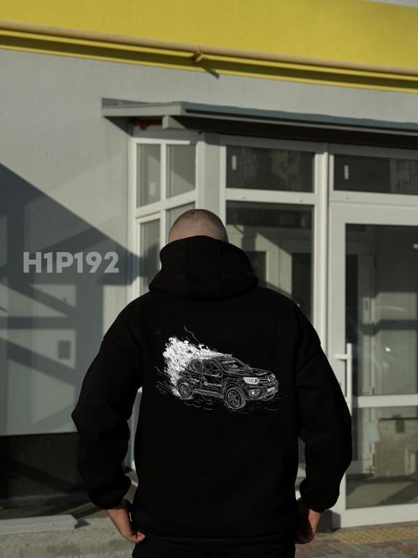 Худи трехнитка начес черный h1p192 ▪️Размеры: S, M, L, XL, XXL ▪️Карман кенгуру ▪️Принт: качественная печать