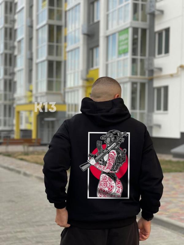 Худи трехнитка начес черный K13 ▪️Размеры: S, M, L, XL, XXL ▪️Карман кенгуру ▪️Принт: качественная печать