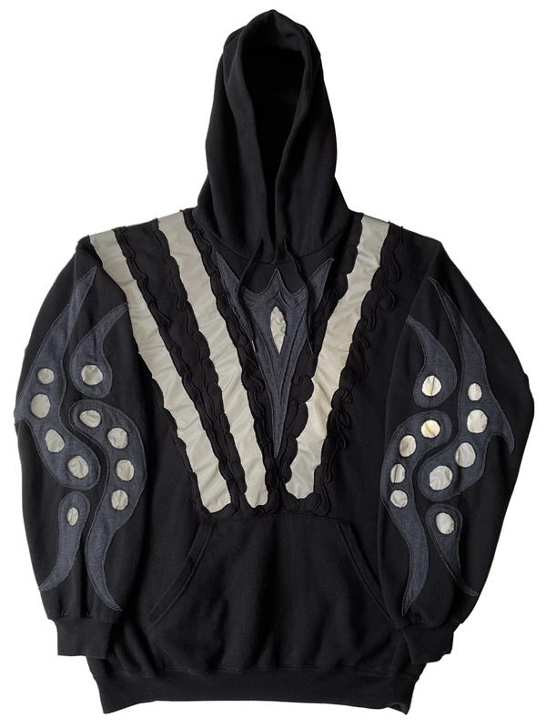 Темная, скорость и мистический орнамент – «Проклятие охотника» создано для тех, кто идет собственным путем, оставляя за собой лишь тени. Это черное худи сочетает в себе агрессивный стиль трайблу с футуристическими рефлективными вставками, меняющими вид в зависимости от освещения. 🔹 Материал: плотная, приятная на ощупь ткань, обеспечивающая комфорт и долговечность. 🔹 Цвет: глубокий черный с контрастными рефлективными элементами. 🔹 Дизайн: динамические трайбл узоры, придающие образу первоначальную силу и мистическость. 🔹 Рефлективные вставки: стратегически расположенные светоотражающие элементы, которые меняют вид худи в темноте. 🔹 Посадка: свободный крой, не стесняющий движений, идеально подходит для активного стиля жизни.