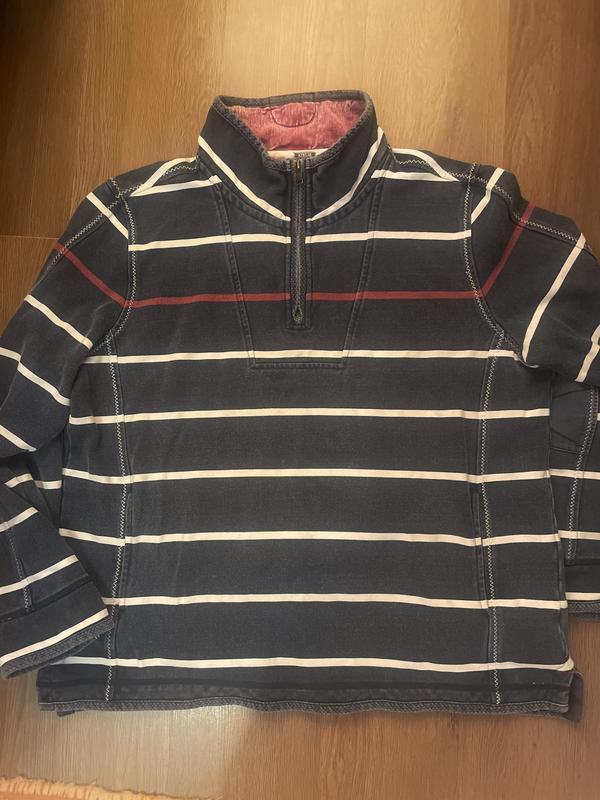 Теплий світшот на блискавці Продам чоловічий брендовийстильний світшот з довгим рукавом, в чудовому стані. М’який і зручний, з приємною на дотик підкладкою всередині коміра (вишневого кольору). Має стильний дизайн у горизонтальну смужку: темно-синій фон з білими та бордовими смугами. Матеріал щільний, котон ,підходить для прохолодної погоди. Застібається на блискавку до половини довжини. Пів обхват 65 довжина 72 рукав 68 Так про нього говорить виробник Ваш улюбленець протягом майже 20 років, наш Airlie Sweat є давнім героєм, без якого не обійдеться жоден гардероб. Він міцний, міцний і міцний із безліччю продуманих функцій, зокрема заниженою нижньою частиною, застібкою на блискавці та контрастними швами на швах. Він також виготовлений із міцної текстурованої бавовни, що дає вам багато носіння з року в рік. Як би ви його не стилізували, зберігайте його на довгі роки, передайте у спадок і дайте йому жити протягом сезонів. Купували за 50 євро зі знижкою )