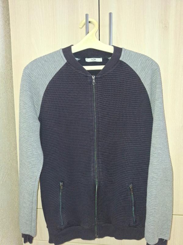 Бомбер, р.46-48, коттон - 65%, полиэстер - 35%, декоративные карманы, сине-серый цвет
