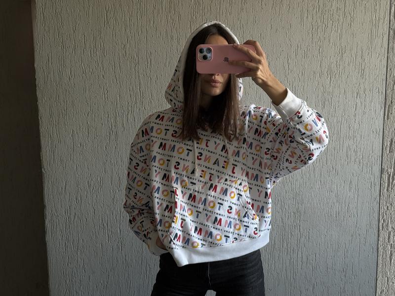 Жіноче худі Tommy Hilfiger. Розмір M, купувався на мій XS щоб було вільне. Оригінал, куплене в офіційному магазині в Києві. На флісі Стан ідеал, видно на фото Мої параметри: груди 91 талія 66 стегна 92