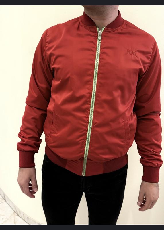 Чоловічий червоний бомбер від Hugo Boss. Стильна та якісна модель для сучасного чоловіка ПОГ 54 см довжина по спині 67 см рукав 66 см плечі 44 см