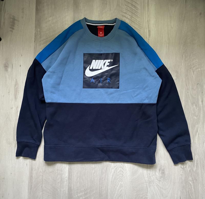 Світшот від бренду Nike air Розмір: L ( краще на М) Заміри: Довжина 70 Ширина під руками 60 Довжина рукава 49 (йдуть приспущені плечі) Плечі: 74 Стан: хороший (є трішки катишок) Принт в ідеальному стані Всередині фліс