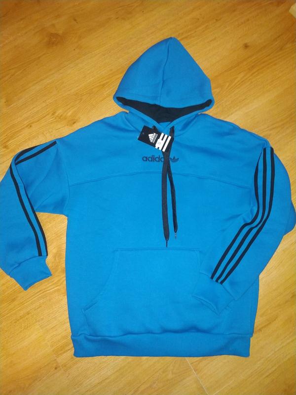 Толстовка, цвет небесно голубой, начес. Теплющая, отлично носится и стирается, после стирки не усаживается. ПОГ 53, длинна 63, рукав от шеи 70, плечо спущено 23
