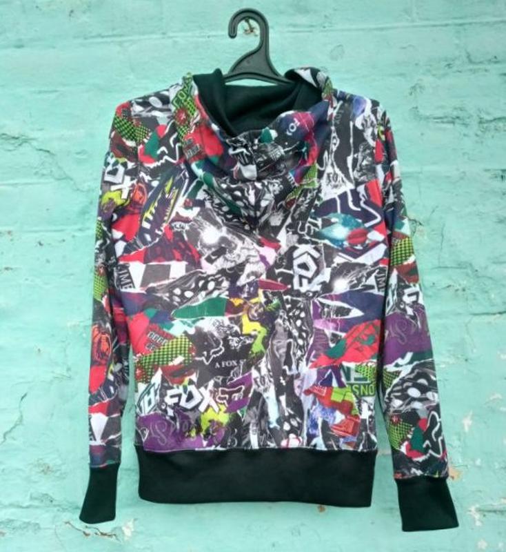 Крутая яркая кофта худи с капюшоном, на молнии Fox р. М. Б/У, в отличном состоянии. Замеры: плечи (см) - 45 рукав (см) - 64 охват груди (см) - 100 длина по спине (см) - 65 Информация о продукте: Подкладка капюшона и тела Карманы для рук Затяжки в капюшоне Эластичные манжеты на рукавах и на талии Логотипы Fox Наружный материал: 100% полиэстер. Подкладка: 100% полиэстер