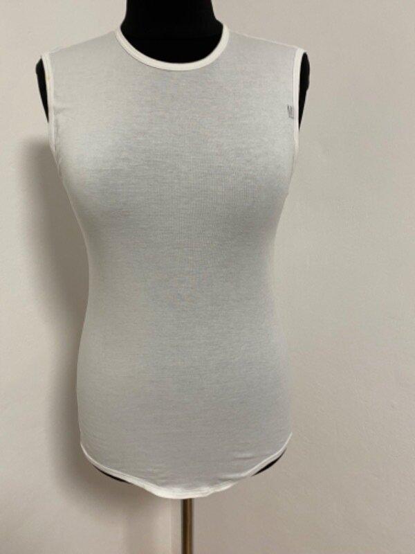 Тонкая белая майка, премиум качество, размер М. Длина - 69см и 79см, плечевой шов - 13см, пог - 44см, тянется до 60см в полуобъеме.